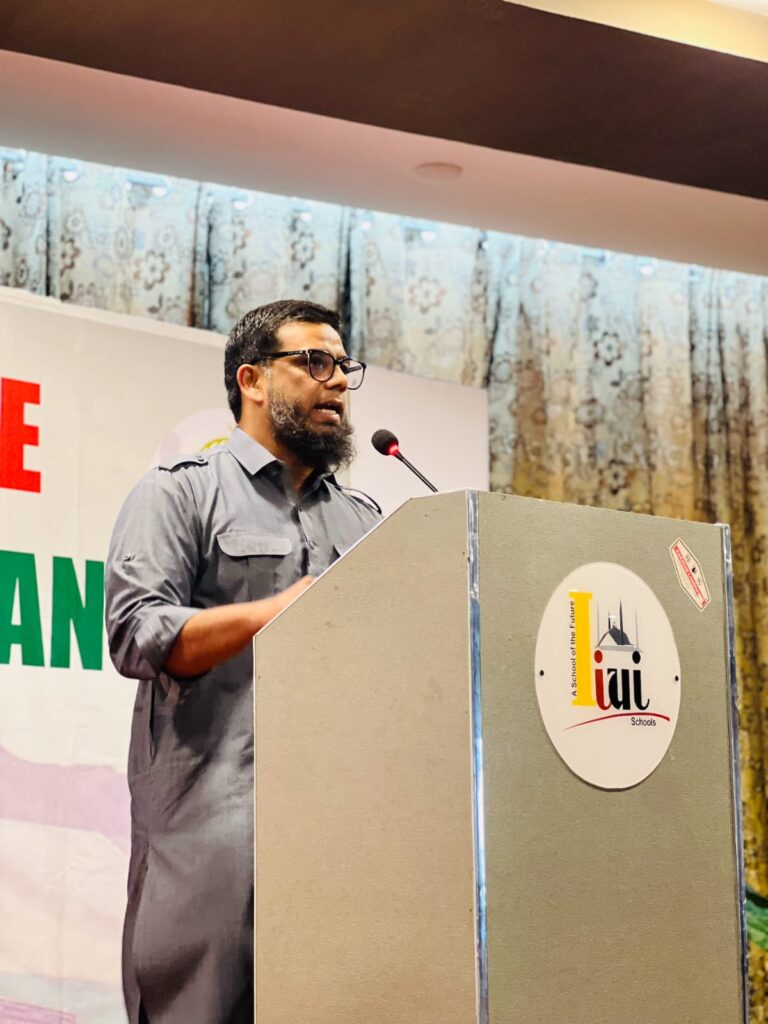 The program began with the recitation of the Holy Qur’an, followed by powerful speeches from our respected chief guests. The first guest was Mr. Abdul Waris Gill, Chairman of Huqooq-un-Nas Foundation. In his inspiring talk, he highlighted the importance of unity among Muslims. Coming from a background of embracing Islam, he strongly emphasized the difference between Islamic brotherhood and the divisions found in other communities. He urged the Muslim Ummah to revive this spirit of brotherhood which is missing today.